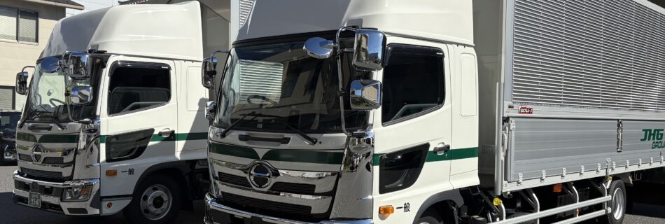 10月10日に中型トラックの新車が2台納車されました。 秋らしい季節になり、最近は日の入りがぐっと早くなってまいりました。 夕方以降は視界が悪くなるため、運転にはこれまで以上に注意を払ってまいります!